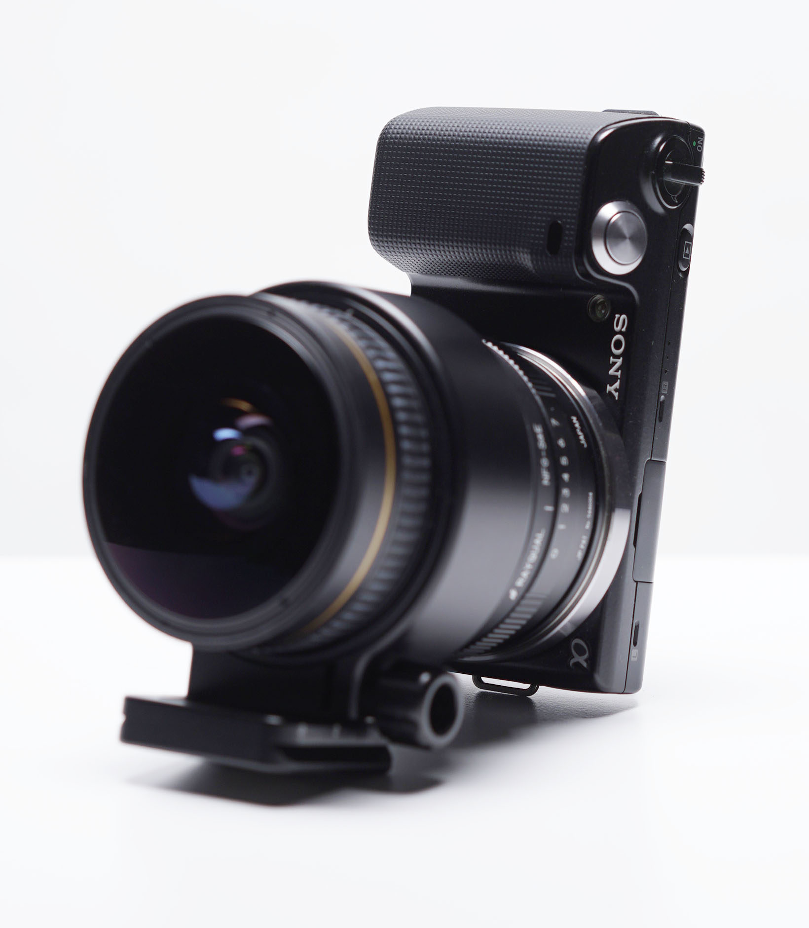 仕事で使うメイン風味なカメラの他に、趣味的要素で使うカメラというのも存在します。ちょうどこのころ、パノラマ撮影に凝っていて、いろいろとやっておりました。その一環と先の通りの、「マウントアダプターによるレンズ遊び」という奴もやっております。そんな中で「!」と思ったのが、SONYのα NEX-5でした。ライカよりも短いフランジバック、レンズ無し撮影(マウントアダプターを使った撮影だと、カメラ側でレンズを認識しないため、リスク管理として通常はシャッターが切れない)もできる。発売自体は2010年6月10日ですが、私が購入したのは2012年ごろ。このNEX-5に他メーカーの魚眼レンズをマウントアダプター経由で取り付けて、360度パノラマ写真を作ったりしていました。