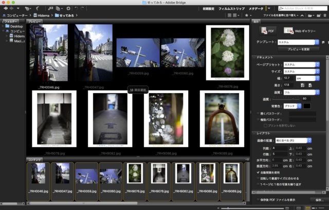 調子に乗って、MacもWindowsも設定しました。こっちの方が処理時間が早い(ような気がする)し、Photoshopにレイヤーで作ってくれる現在の「コンタクトシートII」もいいけれど、こっちはPDFだったり、WEB処理できたりするから、便利だと思うんだよね。