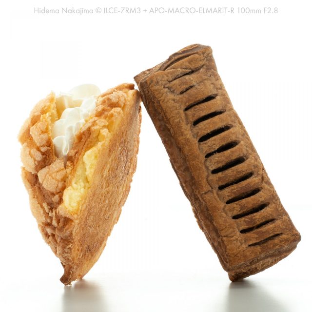 こんな感じの、静物を立たせて撮影するってのも、流行ったなぁ。と思いながら、懸命にメロンパンとチョコパイのバランスの良い場所を探しました。撮影テーブルが結構ツルツルしているので、ダメなら針金とグルーガンで支えを作るか、って思いましたが、なんとか静止してくれるポイントを見つけることができました。昔取った杵柄とは、こーゆーことを言いますねw